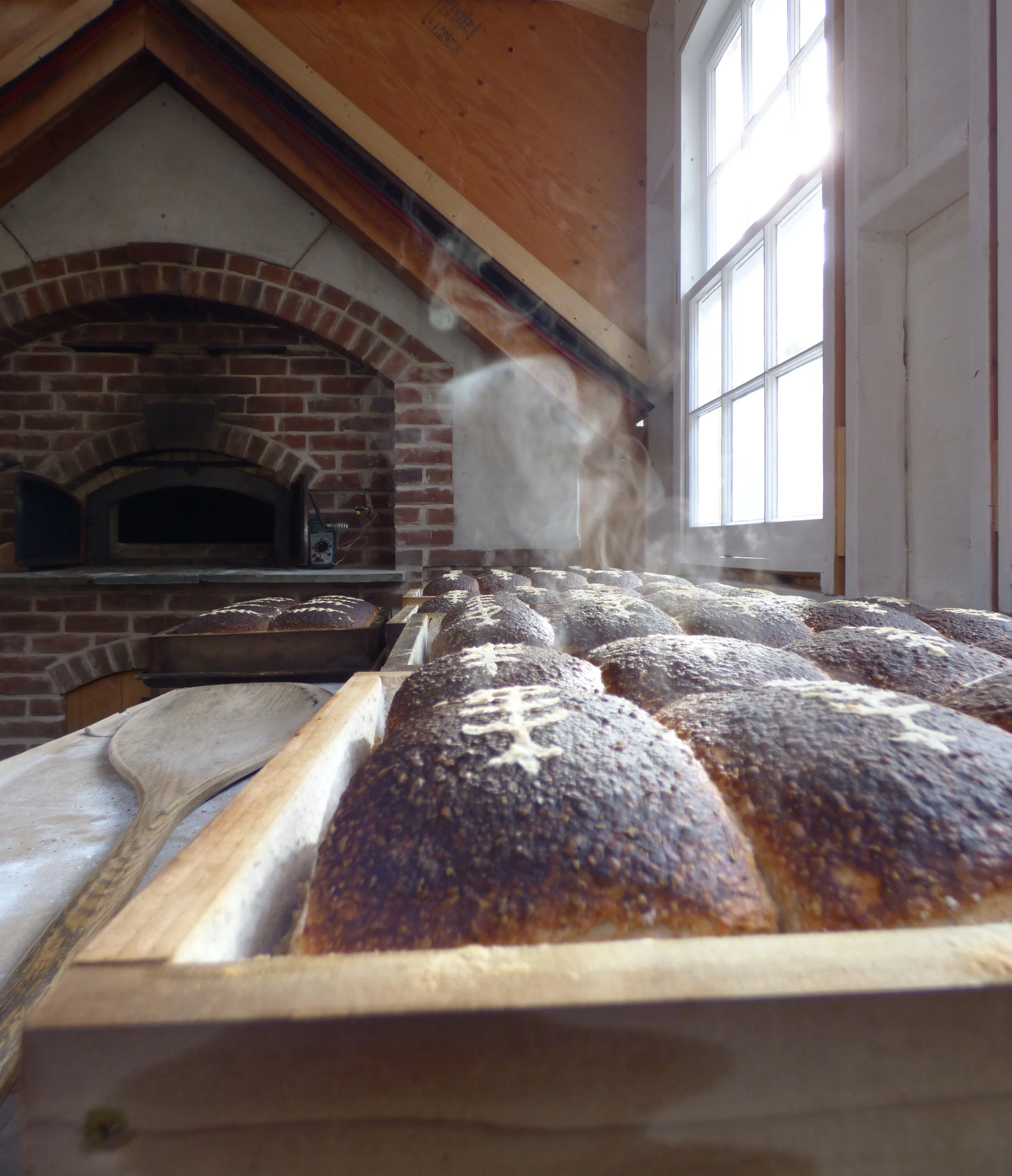 Photos from the early days of Polestar Hearth. For nine years the bakery was attached to our home, with a huge brick oven I built in our back yard. It was a beautiful way to learn and grow, and to put our roots down into the Guelph community. People often ask if I miss baking in a brick oven. The answer is “I loved it then, but I do NOT miss it now!”. Our whole life as a family revolved around the rhythms of keeping that oven hot. Weekends were not weekends, holidays were not holidays. Baking outdoors had its own challenges from snow and rain to squirrels and skunks. Sometimes the loaves would freeze before I could score them with the razor! With a sourdough culture as a family member and a brick oven to fire every day, I shake my head now at what my wife endured for the sake of Good Bread! It takes a lot of love to build any small business, it took extra endurance to bring Polestar Hearth to life.